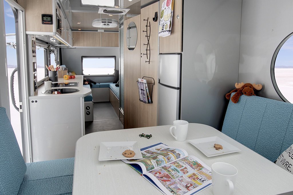 This trailer as just about everything and is under 3000lbs.Dinette that can seat 8,3 Queen bedsFull and separate showerFull RV size FrigOutside table that is attached to the RVSolar panelsDouble propane tanksWindows all aroundEasy towingLots of storage