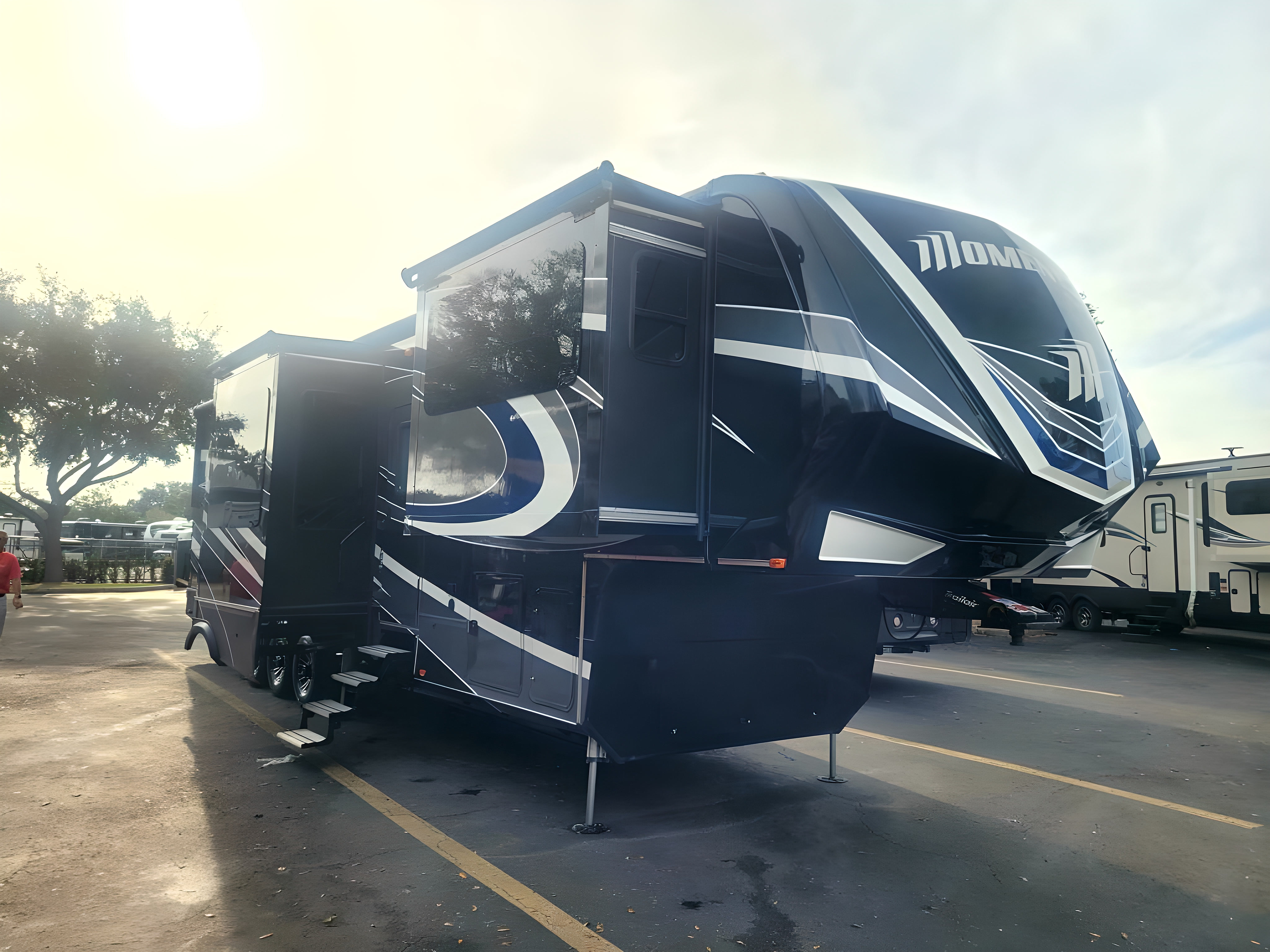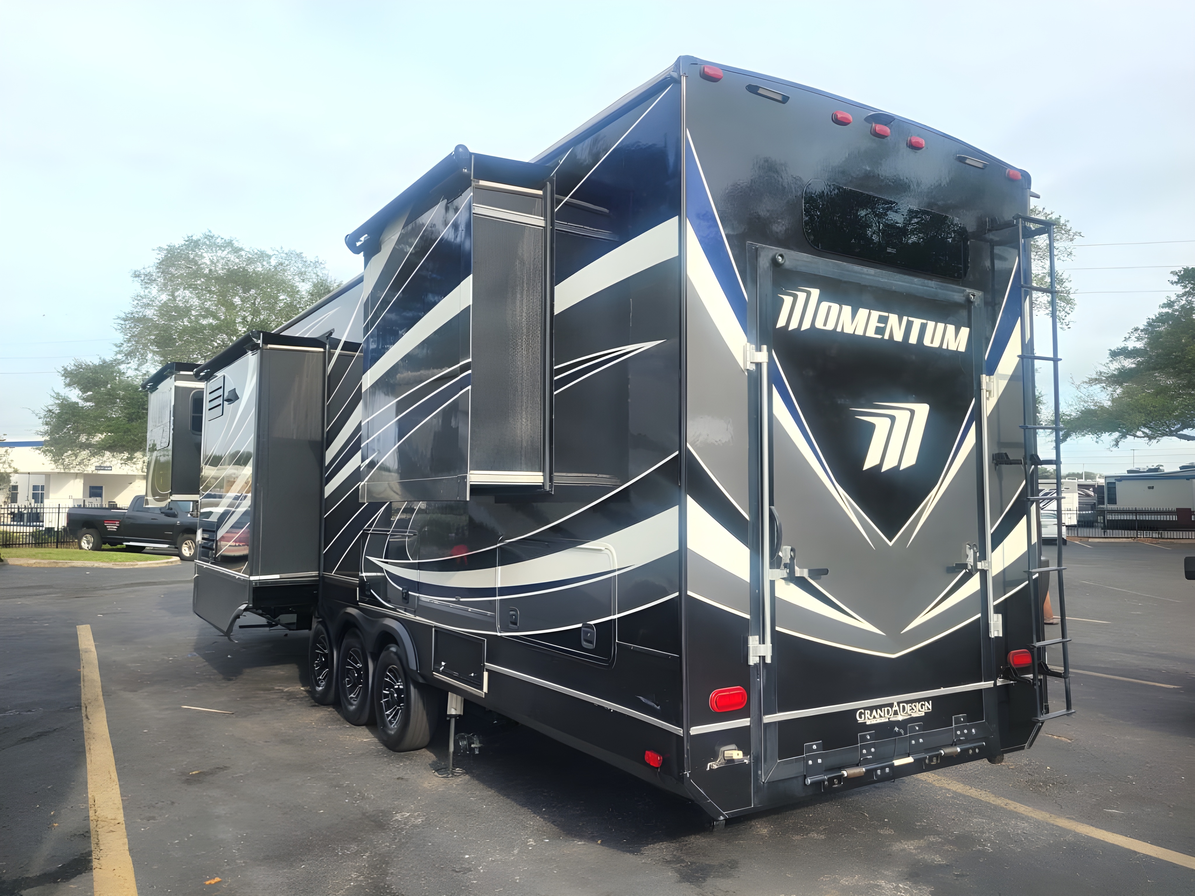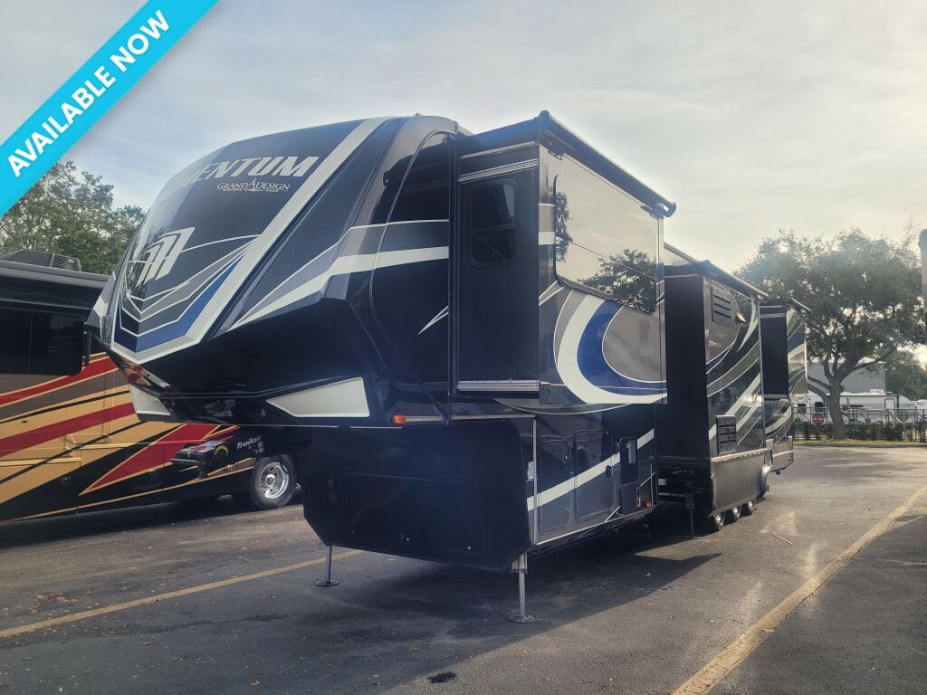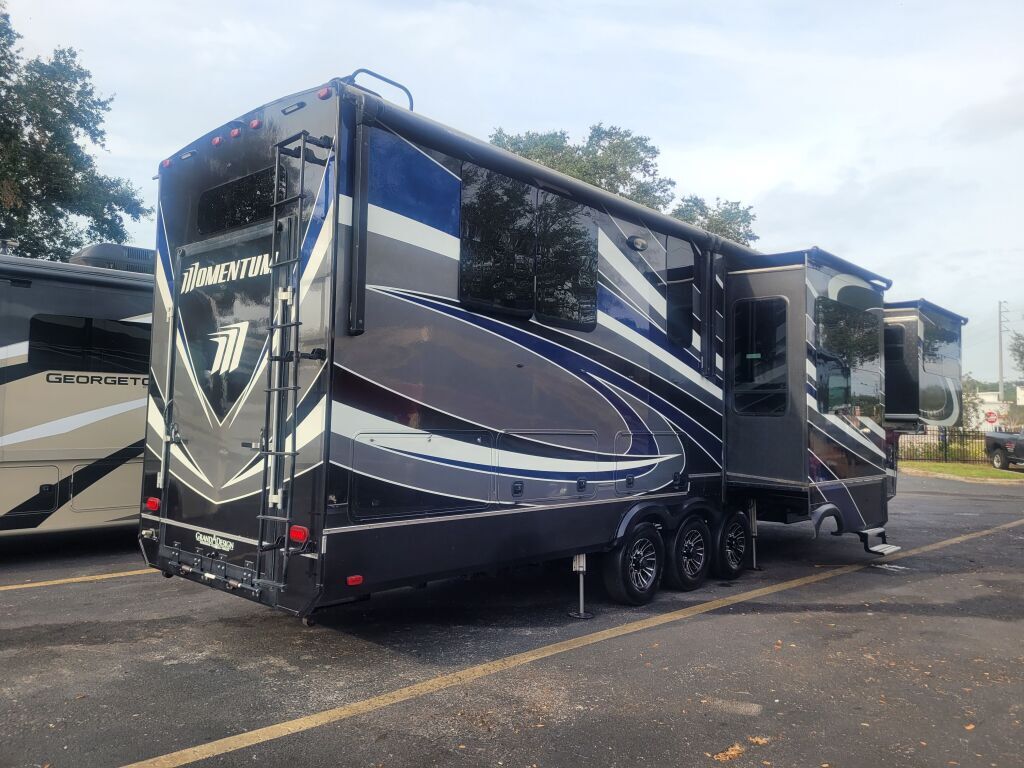 2017 GRAND DESIGN MOMENTUM, 376TH, Fifth Wheel TH, Air Conditioning (BTUs) (30000),Air Conditioning (Standard),Air Conditioning Prewiring (Prewiring) (Yes),Air Conditioning Type (Automatic),Awning (Standard),Awning Length (ft) (28),Awning Length (m) (8.5),Bathroom (Standard),Bathroom Flooring Type (Vinyl),Bathroom Location (Center),Bathroom Medicine Cabinet (Standard),Bathroom Medicine Cabinet Location (Center),Bathroom Mirror (Standard),Bathroom Mirror Location (Center),Bathroom Sink (Standard),Bathroom Sink Location (Center),Bathroom Vent / Fan System (Standard),Bathroom Vent / Fan System Location (Center),Battery (Standard),Battery Converter Amps (65),Battery Power Converter (Yes),Bed Spreads (Standard),Beds (Standard),Black Water Holding Tank Gauge (Standard),Body Material (Aluminum),Brakes (Standard),CD Player (Standard),Cable Prewiring (Prewiring) (Yes),Carbon Monoxide Detector (Standard),Central Vacuum System (Standard),Construction (Standard),Curtains / Shades (Standard),DVD Player (Standard),Door Type (Plastic / Glass),Doors (Standard),Emergency Exit(s) (Standard),Exterior Flood Lights (Standard),Exterior Kitchen (Standard),Exterior Ladder (Standard),Exterior Plugs (Standard),Exterior Shower (Standard),Fireplace (Standard),Freeze Proof Insulation (Standard),Fresh Water Holding Tank Gauge (Standard),Front Brake Type (Not Applicable),Full Size Master Bedroom Closet (Yes),Generator (Optional),Gray Water Holding Tank Gauge (Standard),Ground Fault Plugs (Standard),Heat Prewiring (Prewiring) (Yes),Heater (BTUs) (35000),Heater (Standard),Heater Type (Automatic),Hitch Lights (Standard),Interior Decor (Standard),Interior Wood Finish (Yes),Kitchen / Living Area (Standard),Kitchen / Living Area Flooring Type (Carpet / Vinyl),Kitchen Location (Center),Kitchen Table Configuration (Chairs),Layout (Oven / Stove),Leveling Jack Type (Front Power / Rear Power),Leveling Jacks (Standard),Living Area Location (Front),Master Bedroom (Standard),Master Bedroom Door Style (Conventional Door),Master Bedroom Flooring Type (Carpet),Master Bedroom Location (Rear),Master Bedroom Mirror Doors (Yes),Master Bedroom Shades / Curtains (Yes),Material (Vinyl),Max Sleeping Count (6),Microwave Oven (Standard),Number Of Bathrooms (1),Number Of Convertible / Sofa Beds (2),Number Of Discs (2),Number Of Emergency Exits (1),Number Of Oven Burners (3),Number Of Queen Size Beds (1),Number Of Radios (2),Number Of Recliner / Rockers (2),Number Of Sofas (2),Number Of Televisions (2),Number of Awnings (2),Number of Doors (1),Number of Slideouts (5),Oven / Stove (Standard),Oven Depth (in) (22),Oven Depth (mm) (558.8),Overhead Fan (Yes),Paint (Standard),Pass-Thru Storage (Standard),Power Retractable Awning (Yes),Power Retractable Slideout (Yes),Power Vent Fan (Standard),Prewiring (Prewiring) (Standard),Propane Alarm (Standard),Propane Tank Gauge (Standard),Radio (Standard),Rear Brake Type (Electric Drum),Rear Video Backup Camera (Optional),Recliners / Rockers (Standard),Refrigerator (Stan