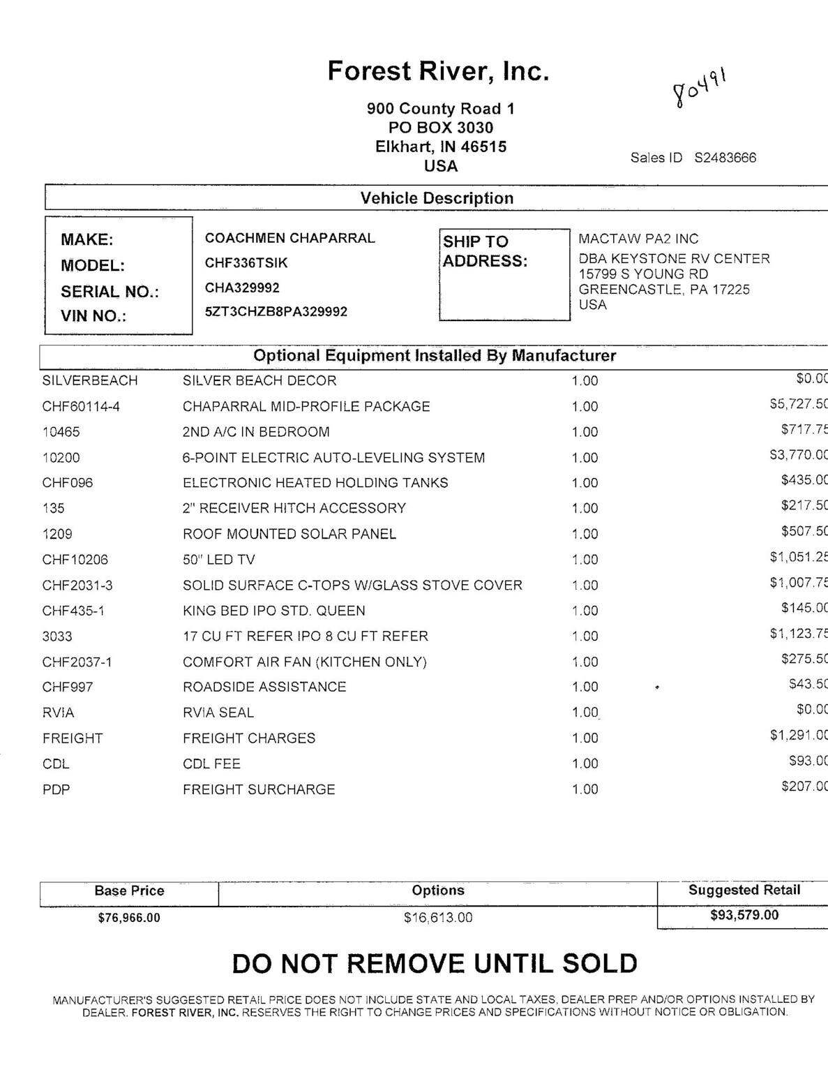 I'm interested in your 2023 COACHMEN CHAPARRAL 336TSIK. is it still available?