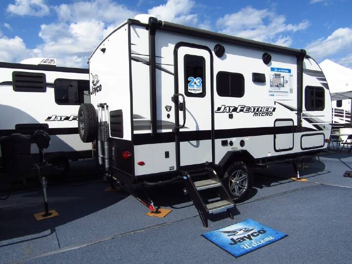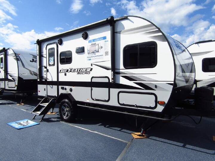 2023 Jayco Jay Feather Micro 166FBS, Not actual photos of #70231. The Jayco Jay Feather Micro 166FBS is a lightweight floor plan with off-road tires and enough space to sleep up to 4 people comfortably. The Jay Feather Micro 166FBS has a full set of amenities including: a front bed, jack-knife sofa with table trays and folding table, a full rear bath and a standard kitchen to whip up your camping favorites.